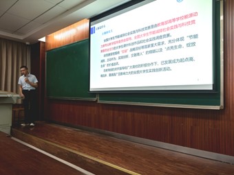 首先由李定超老师介绍节能减排竞赛,他从大赛的内容、参赛的意义、大赛注意事项、参赛流程以及学校团队近年来在大赛中取得的成绩等方面展开详细的讲解,使同学们对大赛有更深的了解。