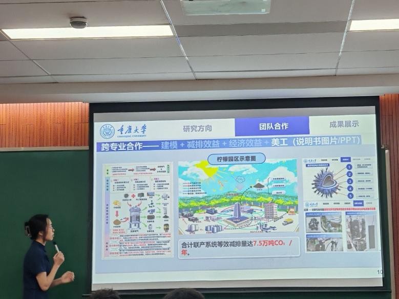 赖文瑾同学则针对队伍国家一等奖项目《“柠”能聚源—基于生物悬浮载体流化床电发酵的柠檬废渣利用系统》大赛经历,从如何确立研究方向、团队分工与合作、项目成果展示等方面进行了详尽的阐述,为大家提供了宝贵的经验。
