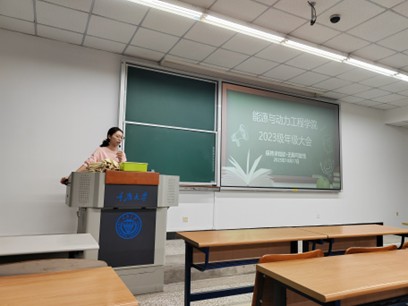 2025年10月17日晚,能源与动力工程学院2023级本科生学期第一次年级大会在A校区研究生院206室开展,由2023级辅导员何汉珍老师主持。会议包括涵盖日常管理、反诈教育与保研经验分享三个方面,旨在加强学生教育管理,提升安全防范意识,助力明晰未来发展规划。