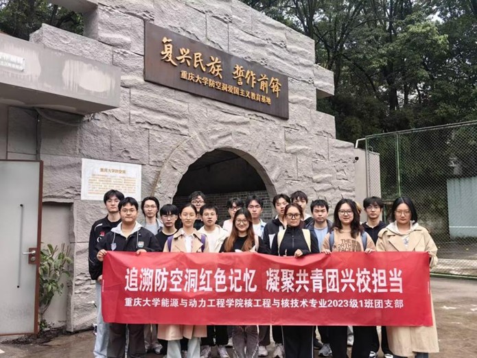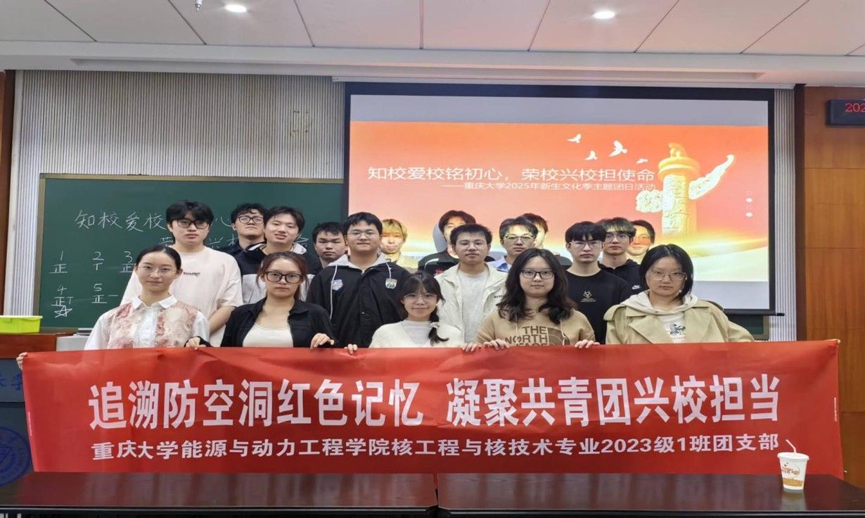 为传承校史文化基因,筑牢青年爱校荣校情怀,10月25日,重庆大学能源与动力工程学院2023级核工程与核技术1班以“知校爱校铭初心 荣校兴校担使命”为主题,在A8304教室及防空洞爱国主义教育基地开展特色团日活动。