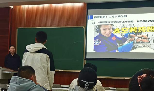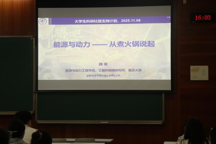 本次讲座以“能源与动力——从煮火锅讲起”为题拉开帷幕。颜笑教授授课风格风趣幽默,首先以图示为媒介,向同学们阐释科研的必要性,并提出“科技改变现有格局”的观点。接着以“太空能烤鸡翅,能否煮火锅?”这一趣味问题为引,由浅入深地讲解了沸腾曲线、表面张力等专业知识。随后,颜教授结合蒸汽机、热发泡喷墨打印、热管等实例,阐述了科研的乐趣在于“探索-创造-改变”。最后,在互动环节,针对同学提出“本科阶段科研活动是否必要”这一问题,他指出:大二学生应以学业为主,好的科研选择应以个人兴趣为指引,起到锦上添花的作用,切勿带有功利性。