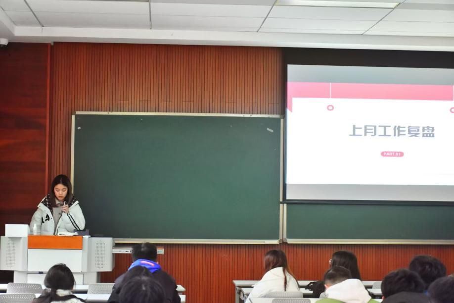 会议伊始,由黄怡瑞回顾近期活动。她首先感谢了学生会各成员的辛勤付出与通力合作。在过去的一个月里,团委学生会参与了保研分享会、防艾知识竞赛、团校与团课培训以及防艾游园会等活动的开展。这些活动由不同层面支撑了同学们的全面成长,助力思想与能力的提升。