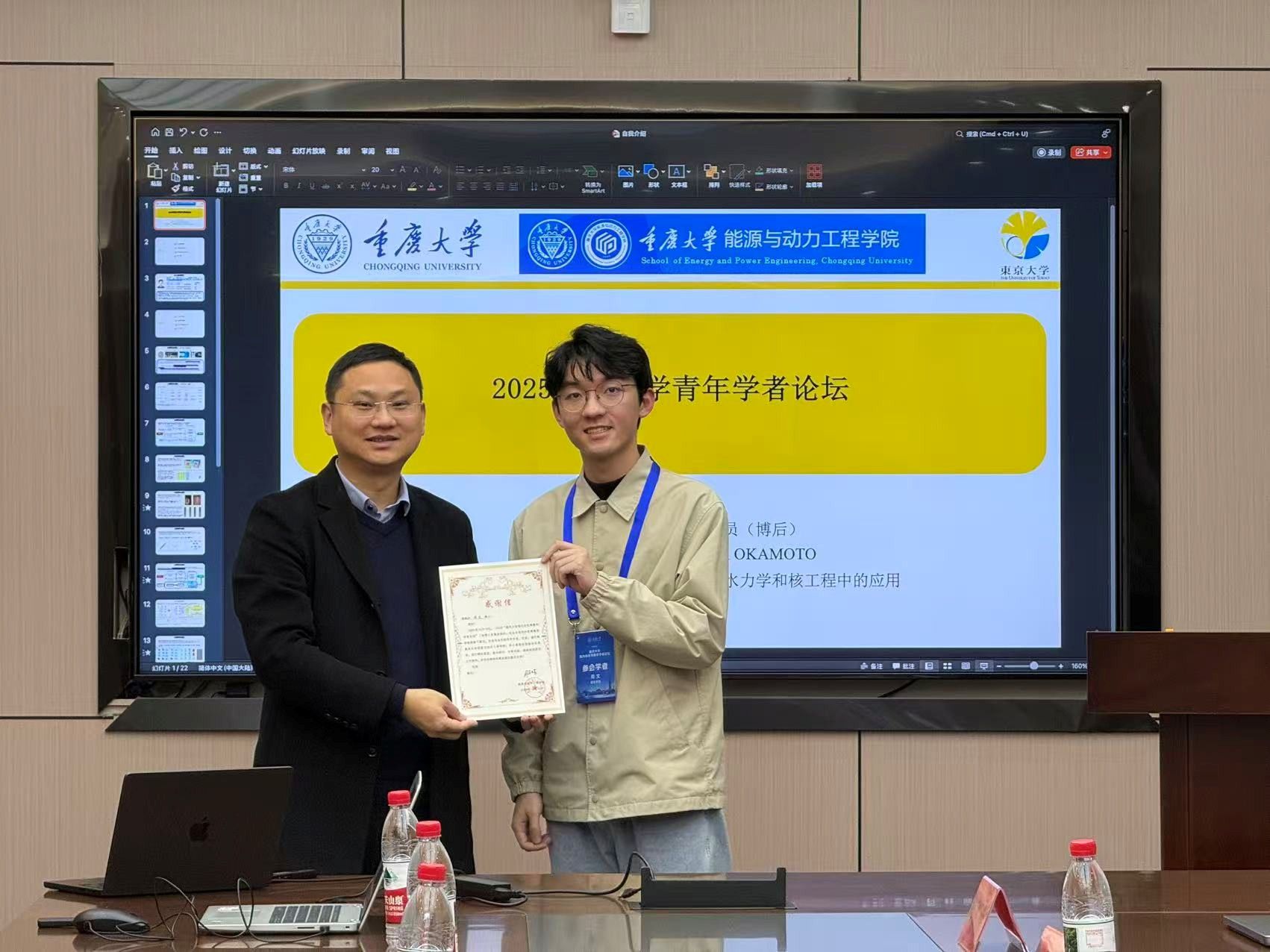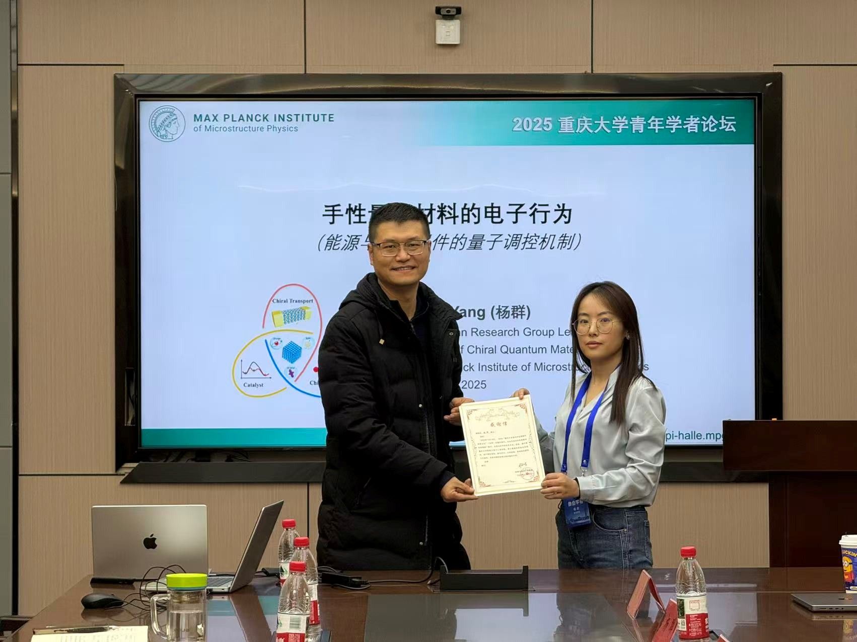 学术分享环节中,比利时法兰德斯技术研究院高级博士后郭峰作了题为“电池系统的安全感知与智能运行:模型、估计与故障控制”的报告。德国马克斯普朗克微结构物理研究所独立课题组长、研究员杨群展示了“量子材料中的电子手性:面向能源与器件功能的量子调控新机制”的研究成果。加拿大阿尔伯塔大学博士后赵远恒分享了“定容低温保存技术研究”。德国马克斯普朗克微结构物理研究所博士后郭泉泉与日本东京大学博士后周文分别以“动态高分子材料的制备、加工及其在能源环境领域的应用”和“BF-GAN:利用生成对抗网络开发AI驱动的气泡流图像生成模型”为题进行学术报告。与会师生踊跃提问,就研究内容、技术路径及潜在合作进行了深入的探讨,现场气氛活跃。报告结束后,学院逐一向各位受邀青年学者致送感谢信,不仅表达了学院的感激和欢迎,同时也寄托了对青年学者们未来科研工作的美好祝愿与鼓励。最后,与会人员就学校、学院的引才政策与需求进行了深入地交流。