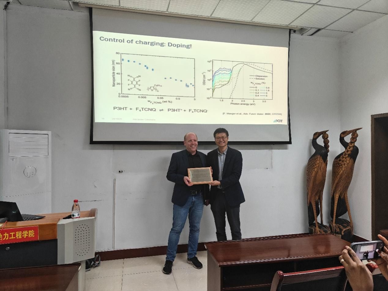 2025年10月29日上午,受能源与动力工程学院孙宽教授邀请,德国卡尔斯鲁厄理工学院Alexander Colsmann教授莅临我校进行学术访问和交流,并在能源与动力工程学院301会议室就“基于纳米颗粒分散体的有机太阳能电池”这一前沿课题作专题讲座。本次讲座由能源与动力工程学院副院长孙宽教授主持,现场座无虚席,反响热烈。