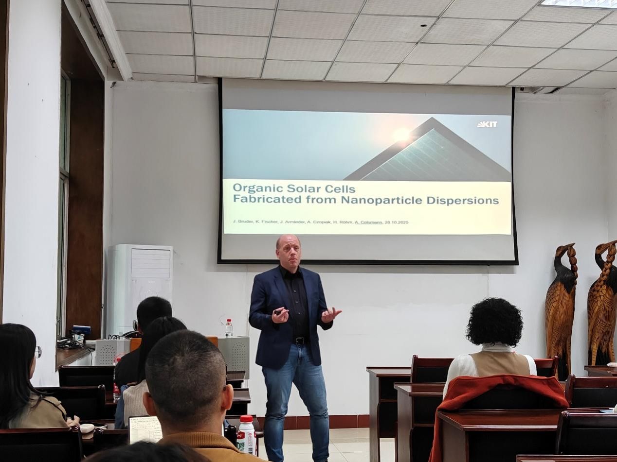 在交流环节,与会师生围绕有机太阳能电池的技术细节、产业化潜力等问题,与Colsmann教授展开了深入讨论。